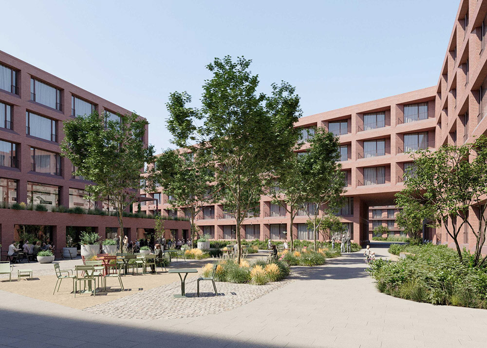 Vizualizace nádvoří plánovaných studentských kolejí v Olomouci