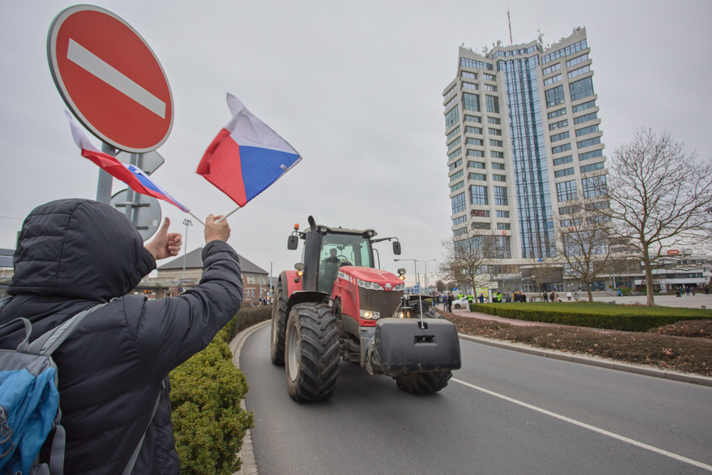 FOTO A VIDEO: Potlesk i kolaps dopravy. Stovky traktorů na protest projely Olomoucí