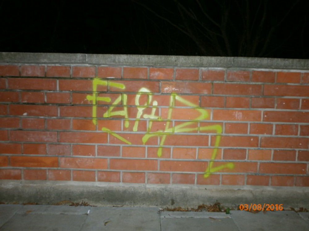 Vandalové posprejovali zídku u Smetanových sadů, strážníci je chytili při činu