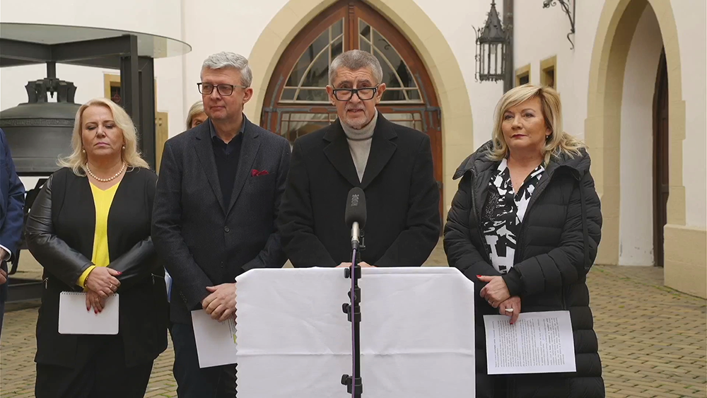 Tisková konference po jednání stínové vlády Andreje Babiše v prostorách olomoucké radnice