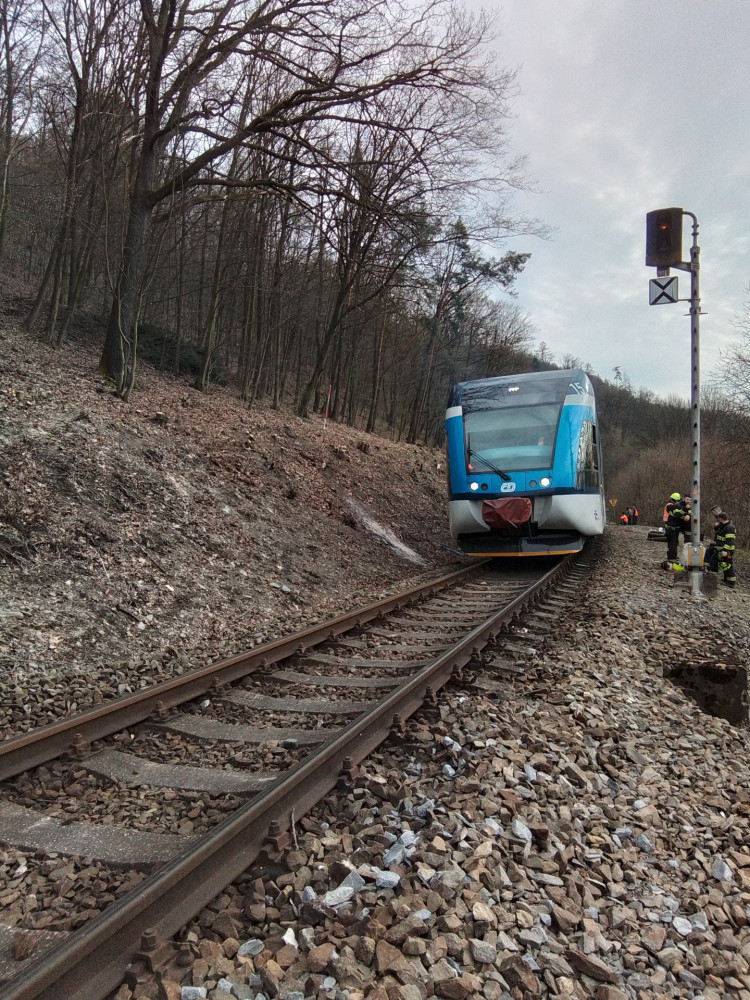 U Hluboček spadl na koleje strom. Hasiči museli z vlaku evakuovat přes šedesát cestujících