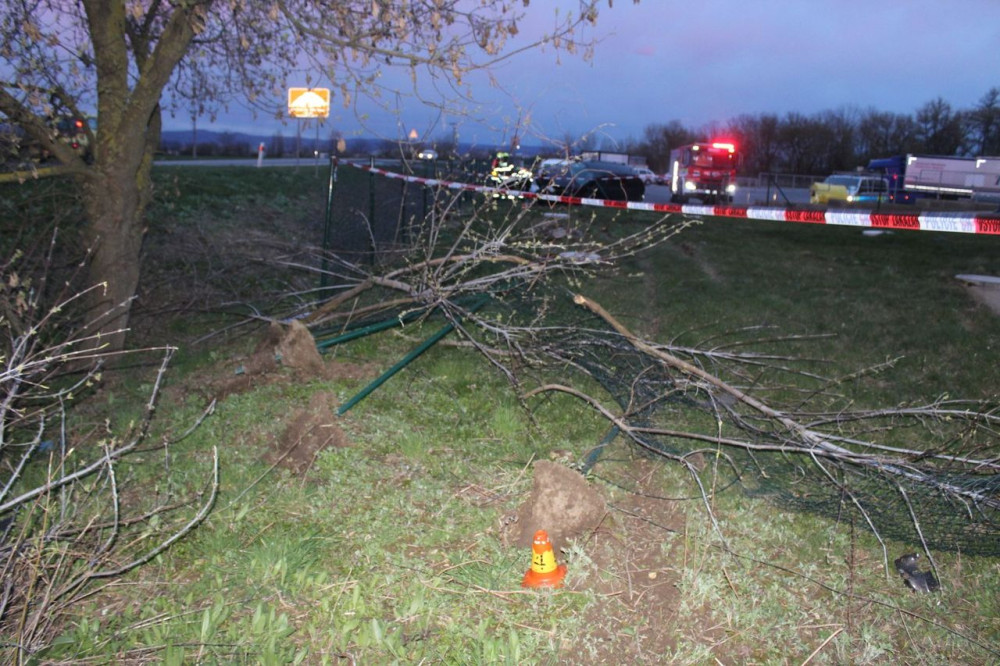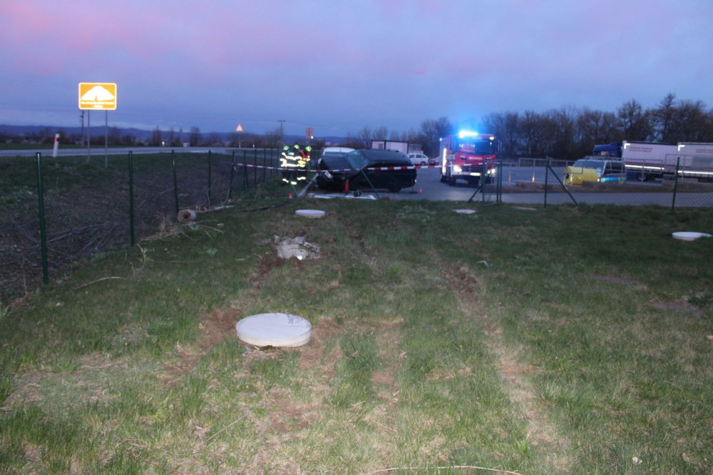 Mladý opilý řidič smetl u Břuchotína patník, plot, hydrant a obrubníky. Zastavilo ho až zaparkované auto