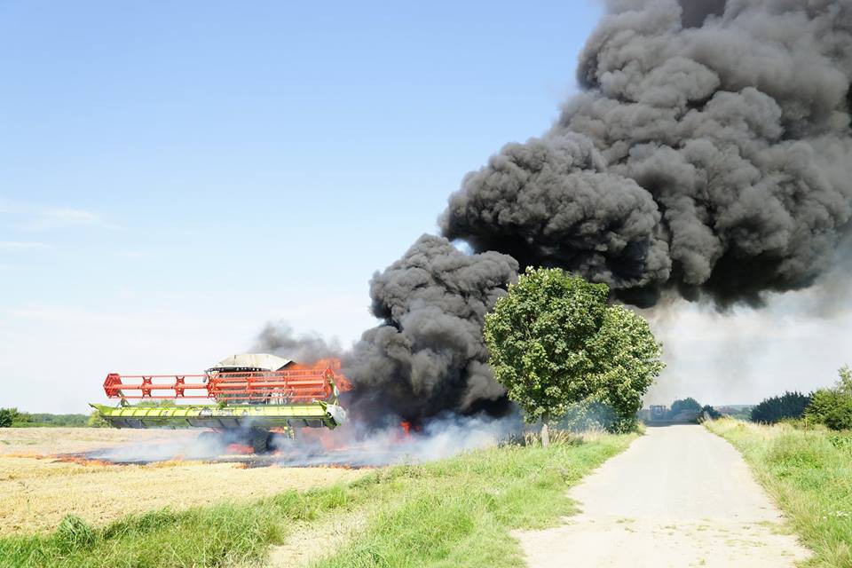 Oheň na polích s obilím. Při sklizních dnes hořel další kombajn, škoda činí 7 milionů korun