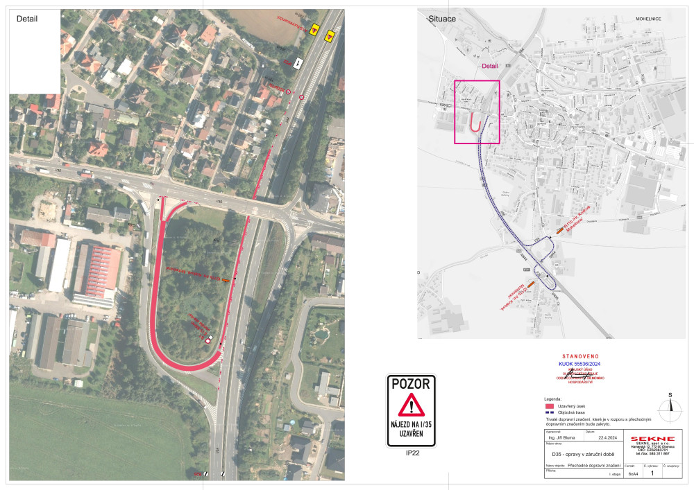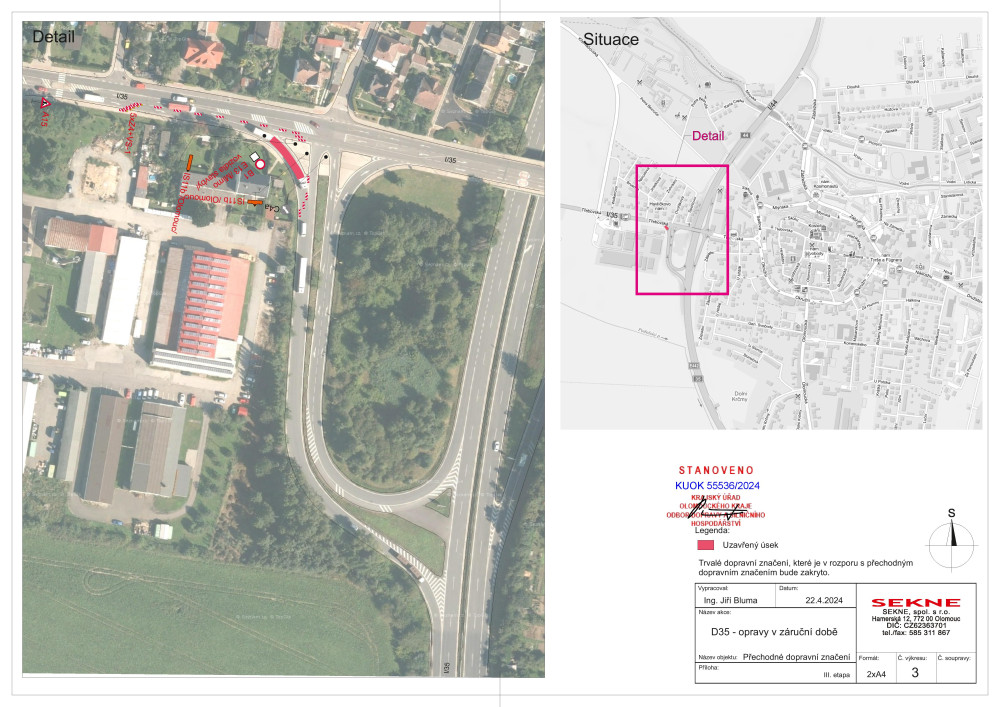 V Mohelnici se na čas zavře klíčová odbočka na dálnici směrem do Čech. Na sjezdech je poškozeý asfalt