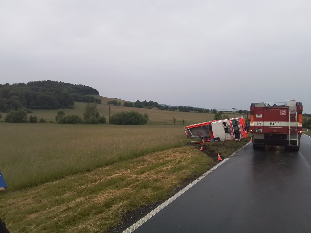 Na Jesenicku havarovala hasičská cisterna. Dva hasiči skončili v péči záchranářů