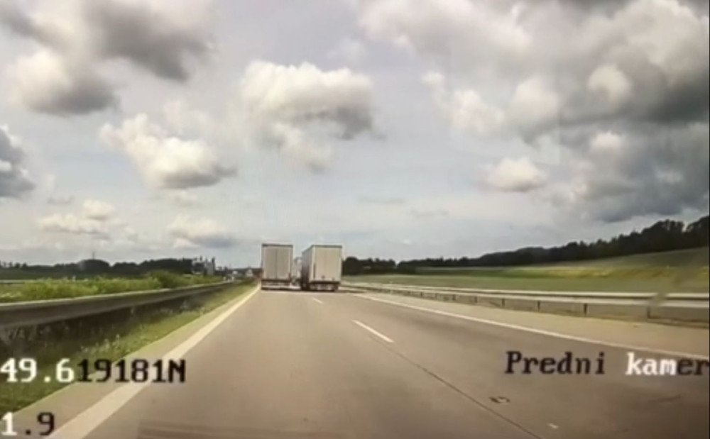 VIDEO: Řidička kamionu předjížděla v zákazu u Bělotína další nákladní auta. Zpomalila provoz na dálnici