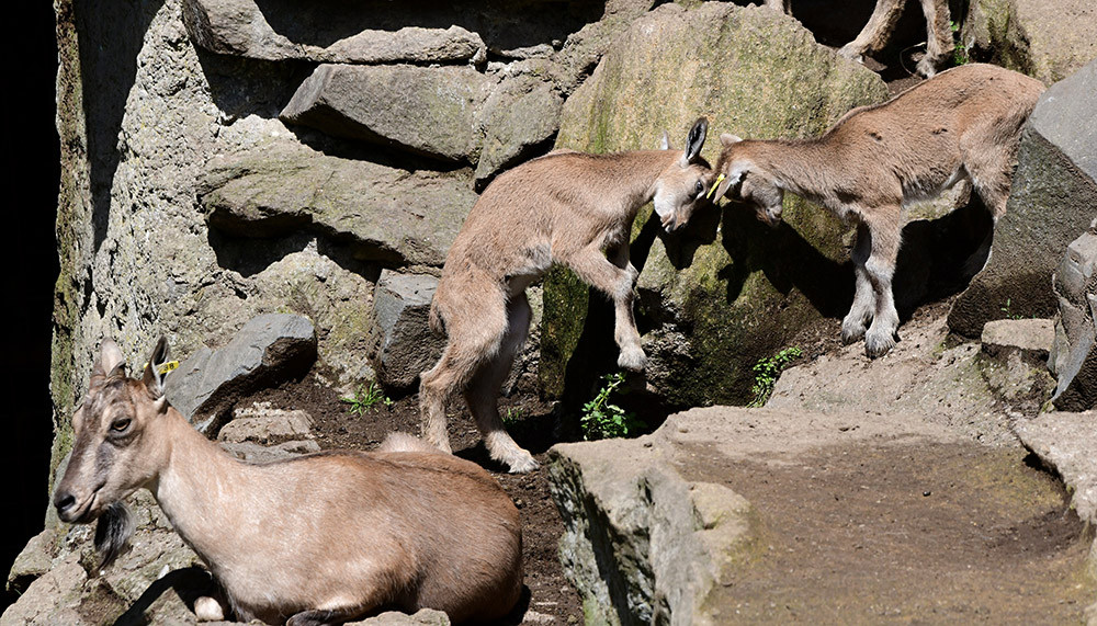 Stádo koz šrouborohých olomoucké zoologické zahrady se rozšířilo o dvanáct mláďat