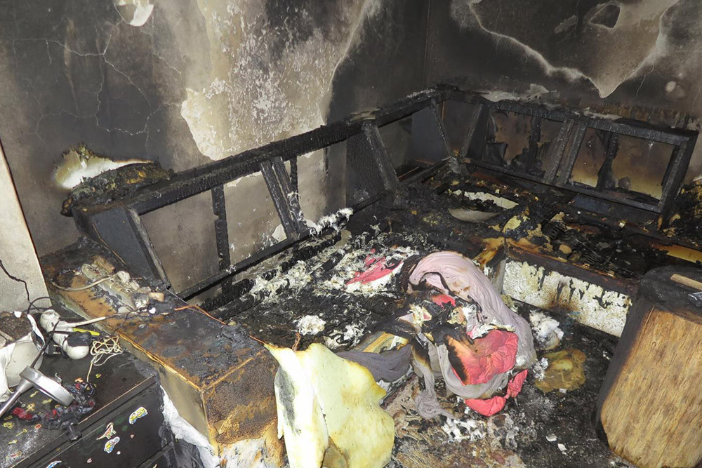 Požár vypukl v obývacím pokoji kvůli závadě při nabíjení hlavové svítilny