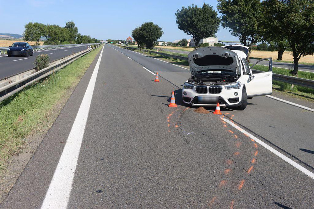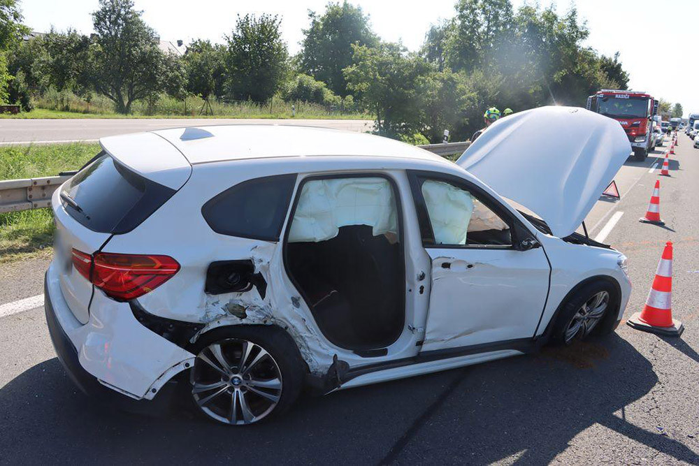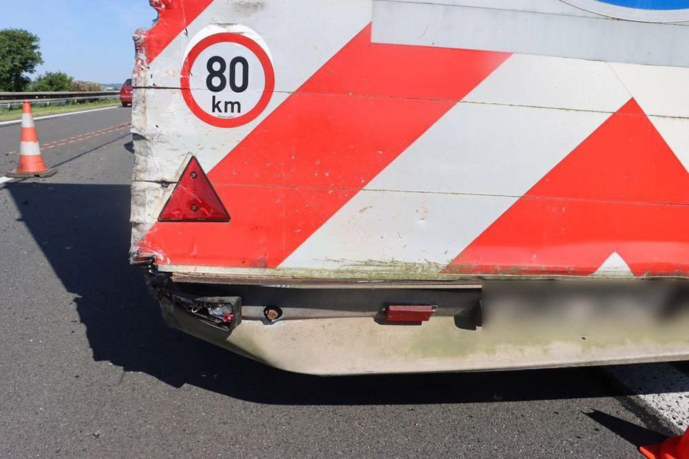 Mladík v BMW si na dálnici u Nákla pozdě všiml pracovní skupiny s traktory. Škoda se blíží půl milionu korun
