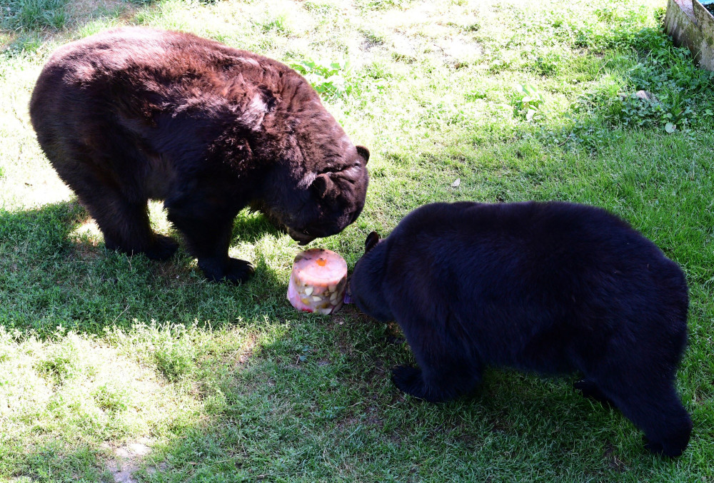 Baribalové z olomoucké zoo dostali ledové koule plné ovoce. Chovatelé je tak chtějí ochladit a zabavit