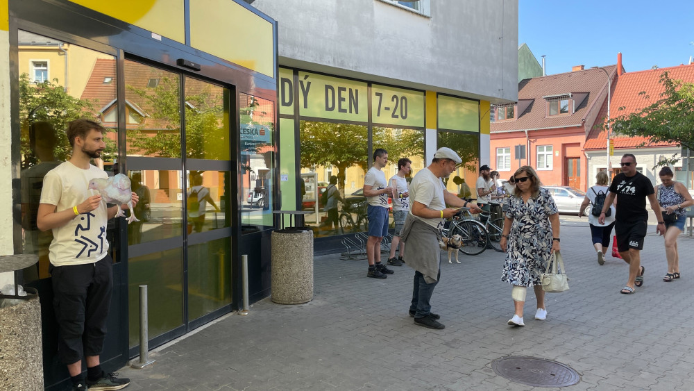 Obránci zvířat protestovali před obchodem Albert v Litovli. Vadí jim životní podmínky kuřat