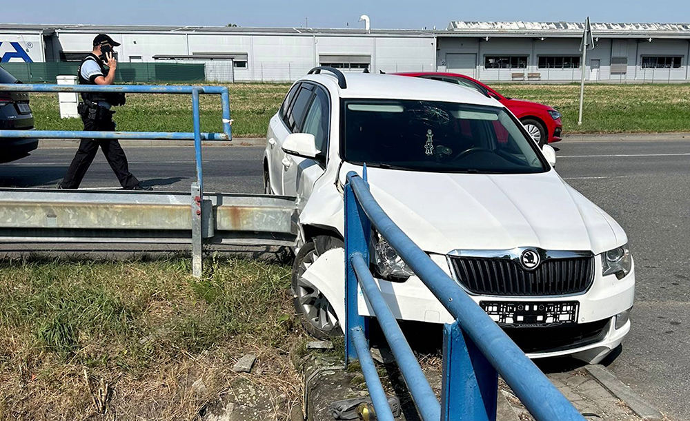Pronásledování skončilo nárazem auta s poškozenými pneumatikami do zábradlí mostu