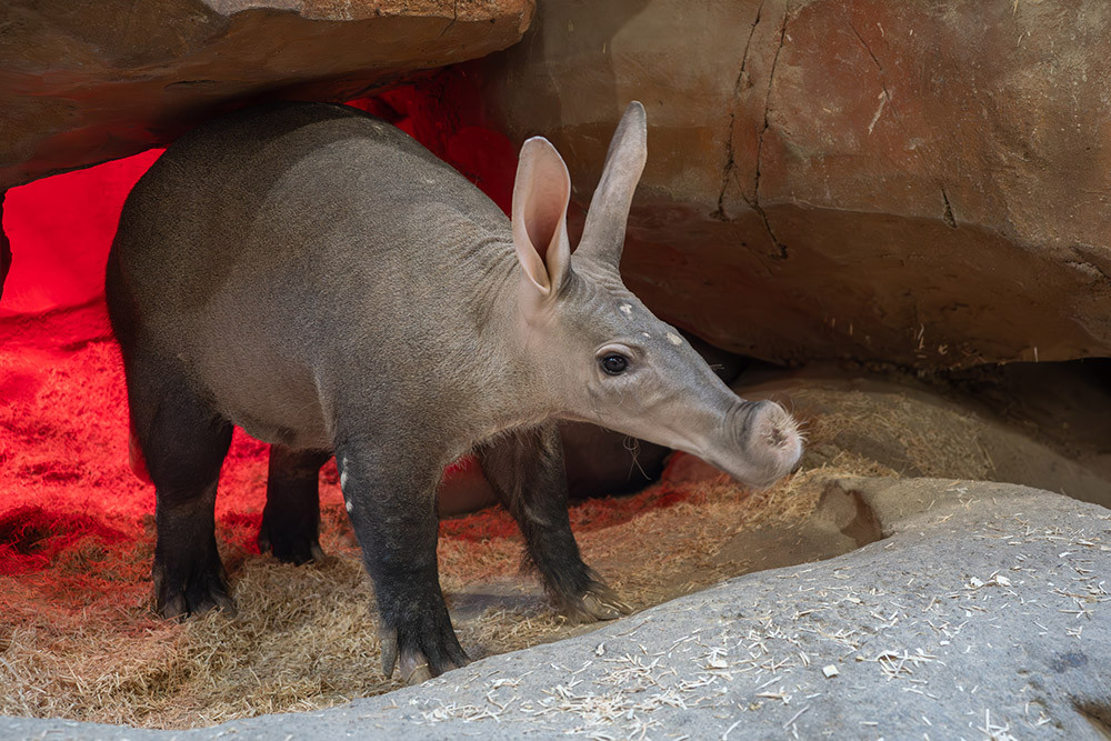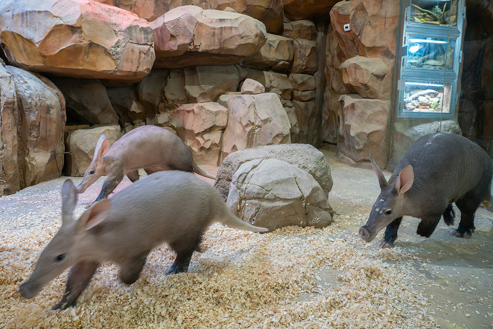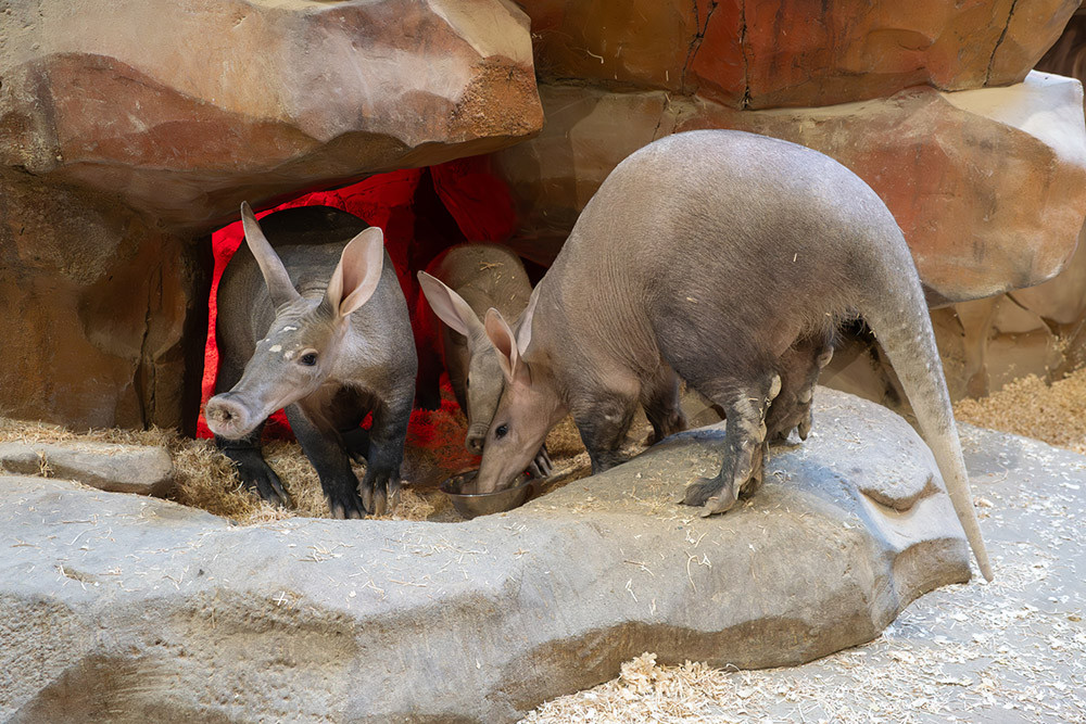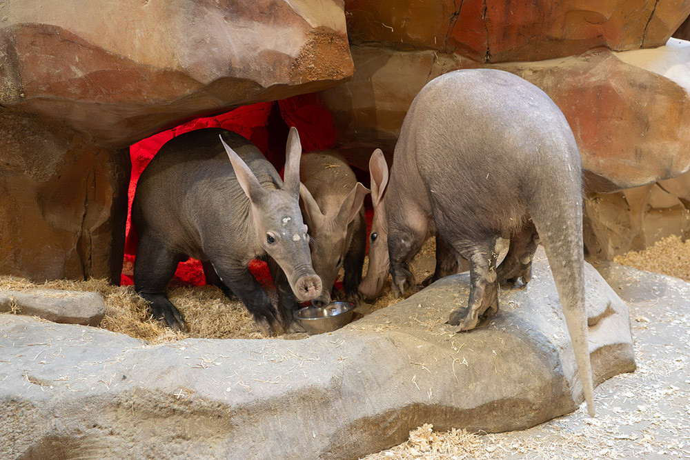 Rodina vzácných hrabáčů je opět spolu. Mládě v Zoo Olomouc přibralo při kojení skoro 25 kilogramů