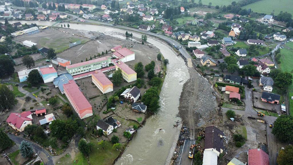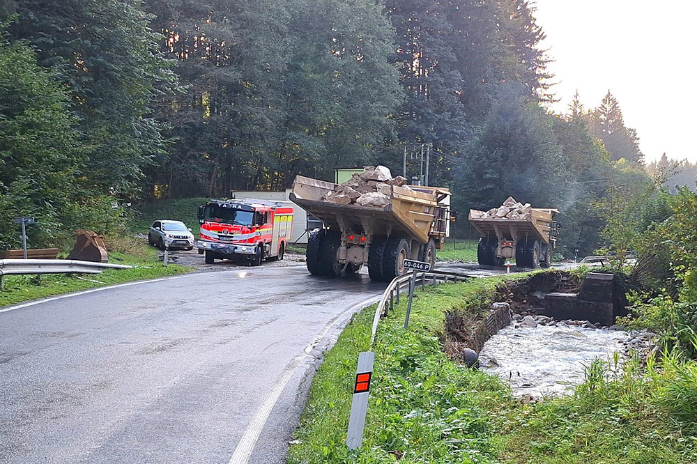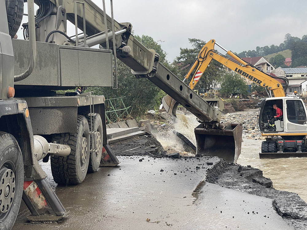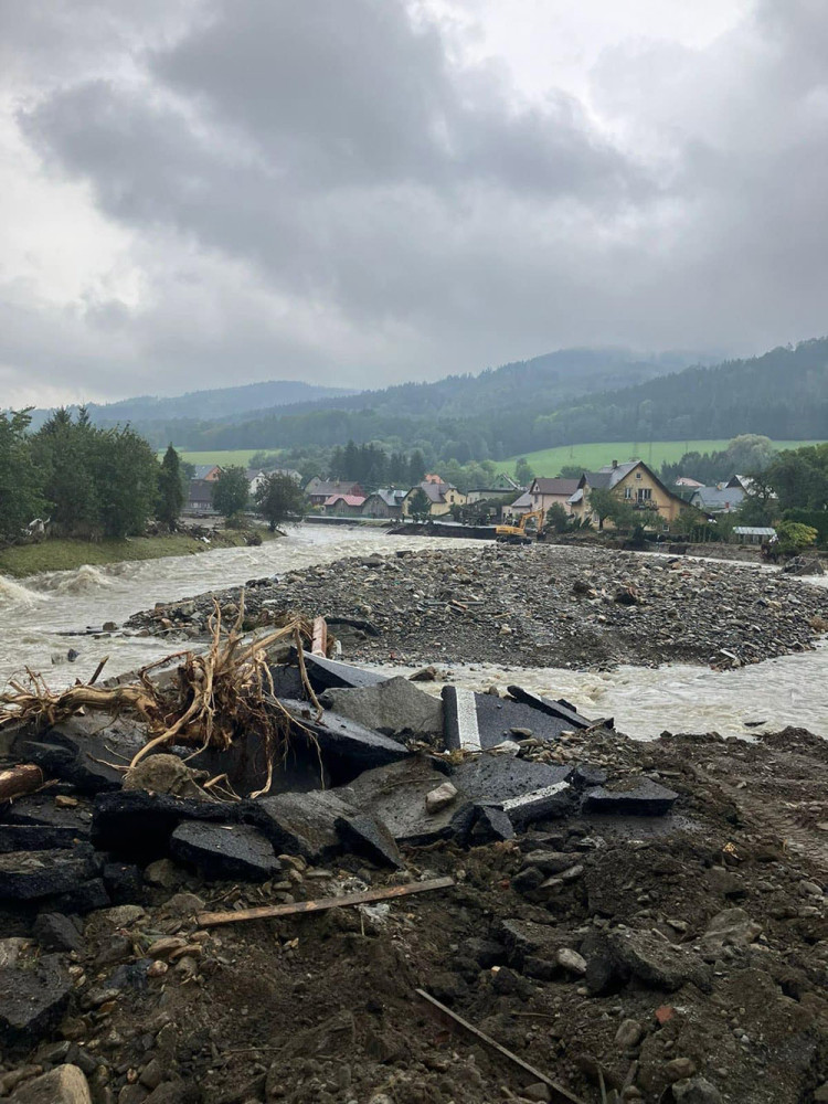 2 - Zkáza silniční sítě na Jesenicku. Škody jsou ohromné, provizorní cestu stavěli i armádní ženisté