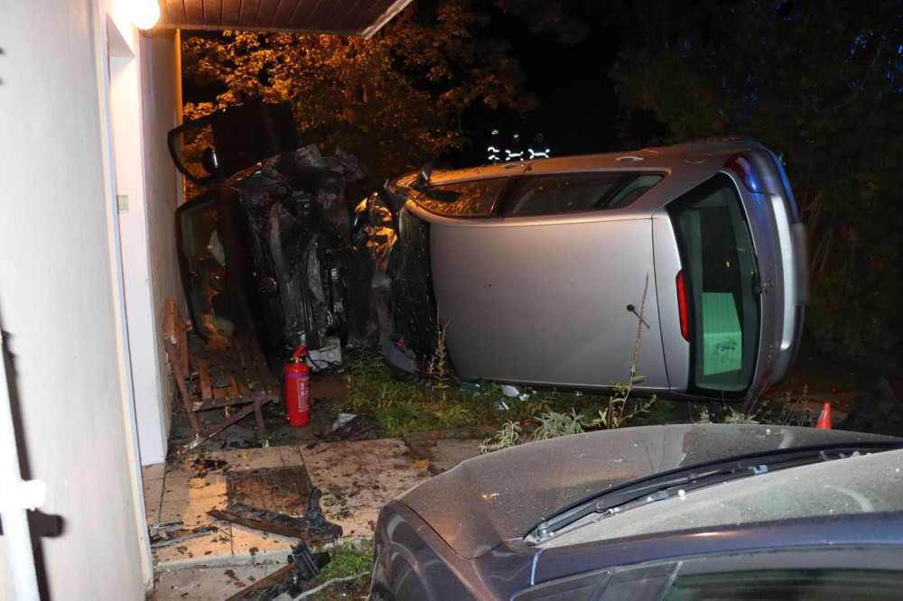 Řidič se dvěma promile vyletěl v Nových Zámcích ze zatáčky. Naboural zaparkované auto a dům