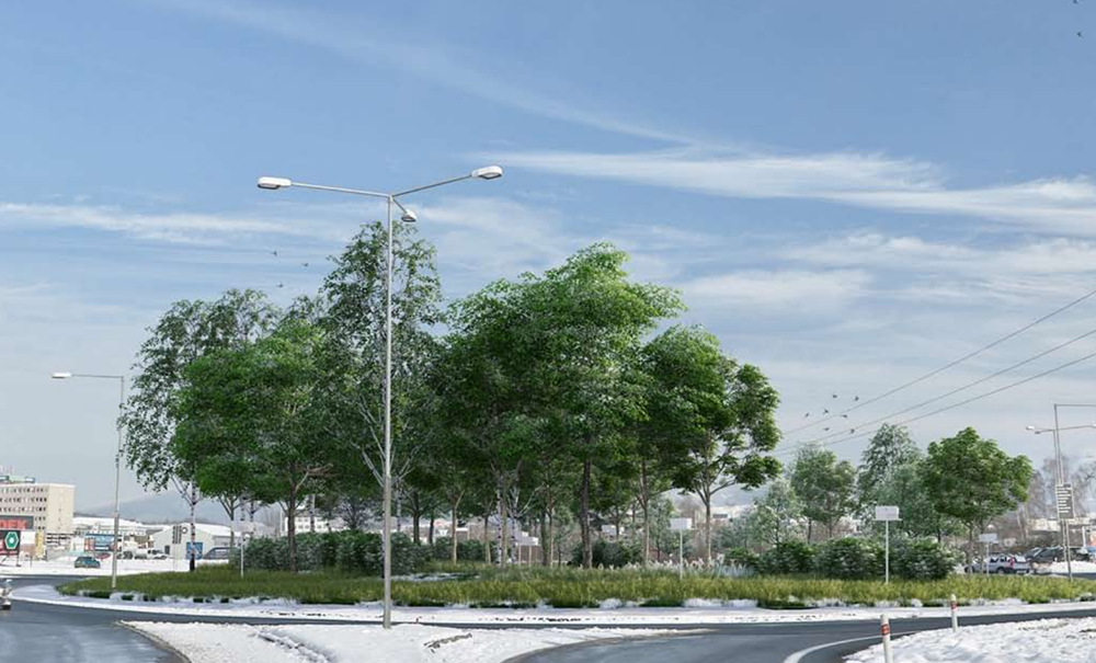 Vizualizace proměny rondelu na příjezdu do Šumperku od Bludova či Olomouce - vítězný návrh ateliéru Landa Ruhmkorf