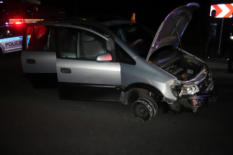Podnapilý mladík bez řidičského průkazu jel autem s upadlou pneumatikou