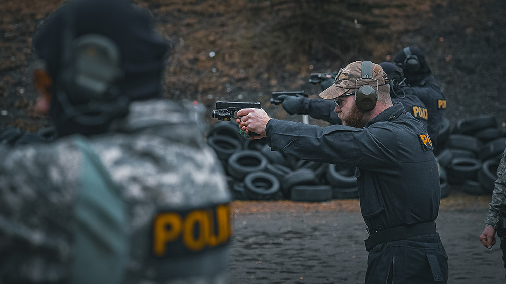 Ondřej Havlíček při natáčení videa u policejní zásahové jednotky