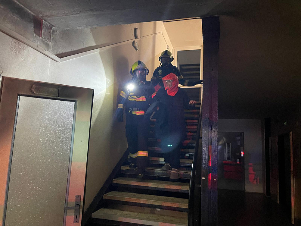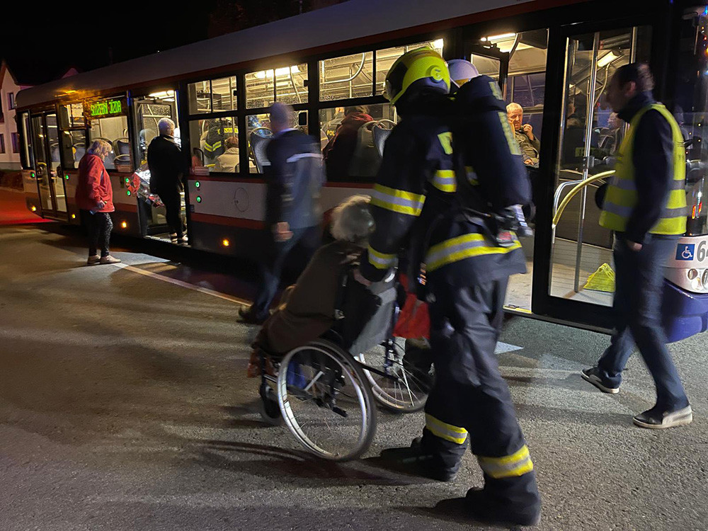 V Olomouci hořelo v domě s pečovatelskou službou. Hasiči v maskách zachraňovali dvacet lidí