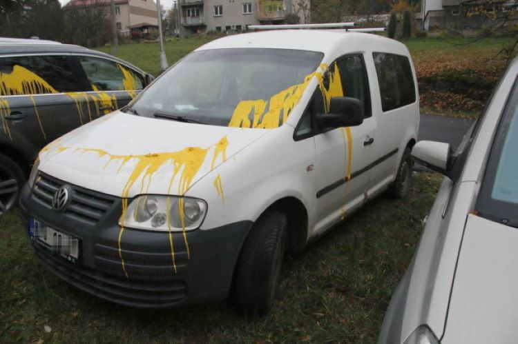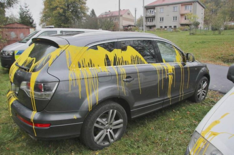 Vandal polil dvě auta jednoho majitele z Hranicka žlutou barvou a propíchal gumy. Škodu je 120 tisíc