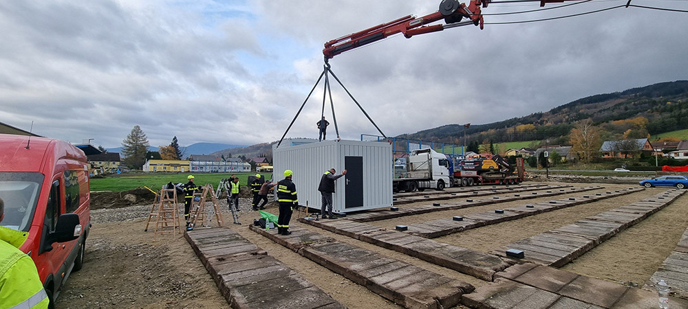 Stavba modulární provizorní školy v České Vsi - ilustrační foto