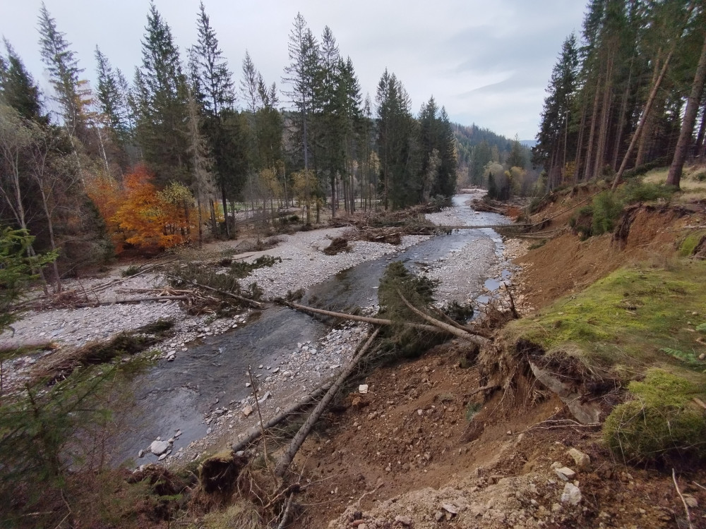 Tři sesuvy v Hladovém dole zasypaly Hladovou cestu. Vznikly kvůli narušení svahu při stavbě nezajištěné cesty a utržení smrků. Listnaté stromy s hlubšími kořeny rozsah zmírnily.