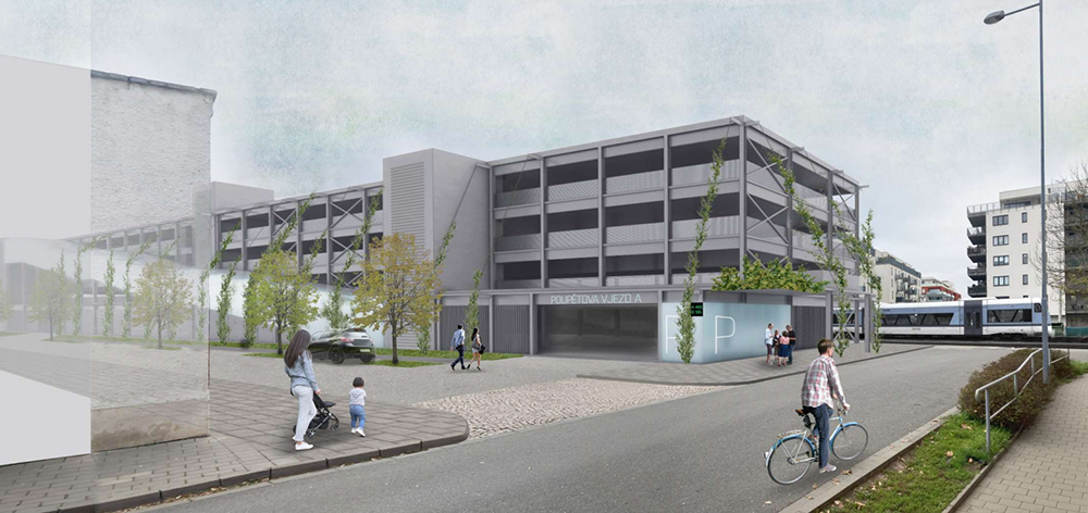 Vizualizace parkovacího domu v Poupětově ulici