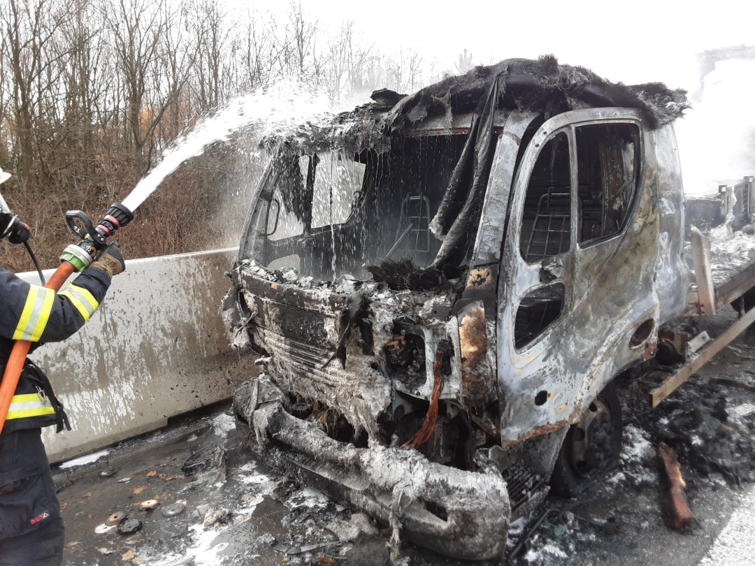 Pozor na D35 u Kozlova. Hasiči zde likvidují požár nákladního vozu, jeden jízdní pruh je neprůjezdný