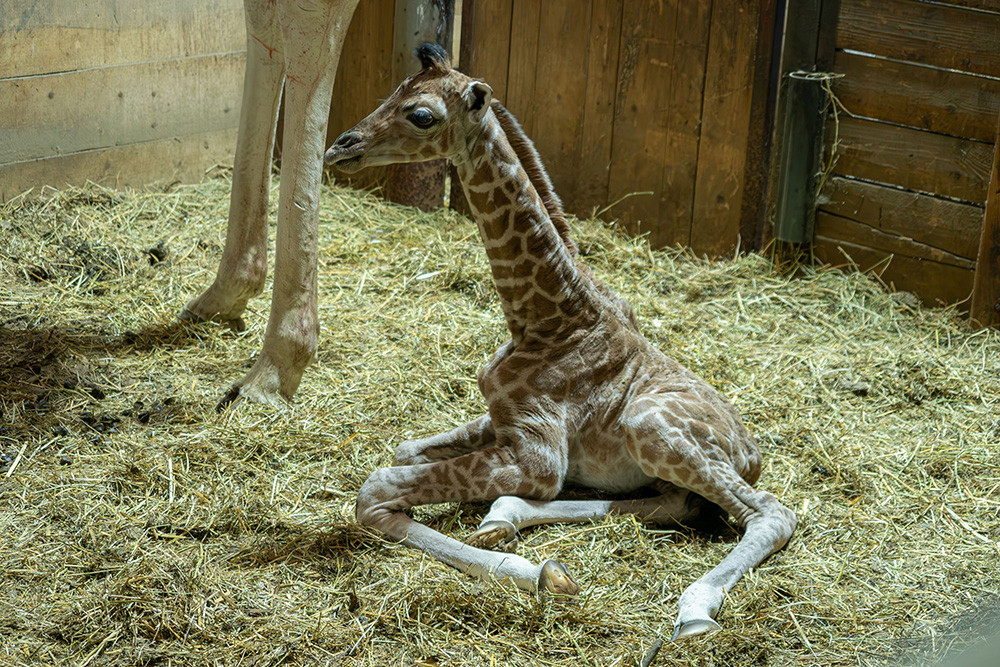 V Zoo Olomouc se rozkoukává týdenní žirafátko Nick, mládě rozšířilo desetičlenné stádo