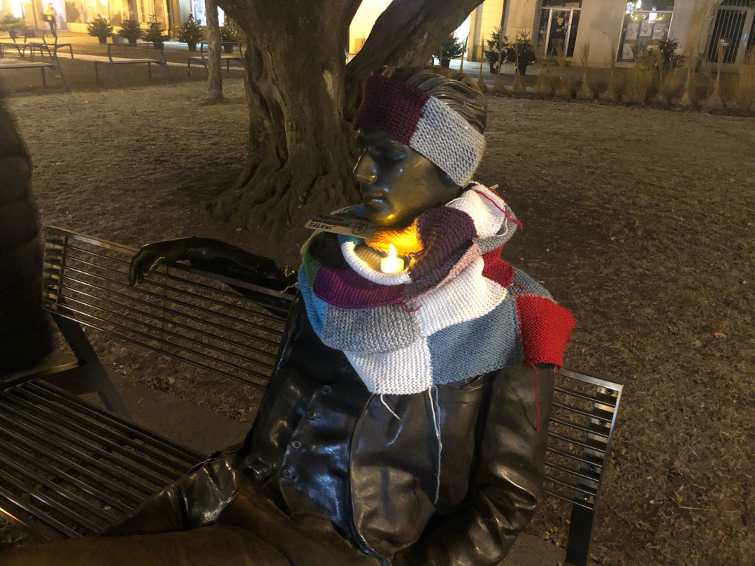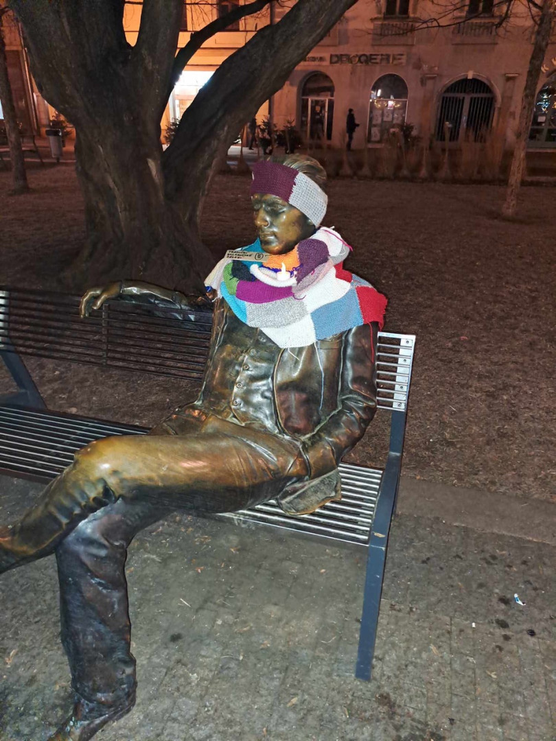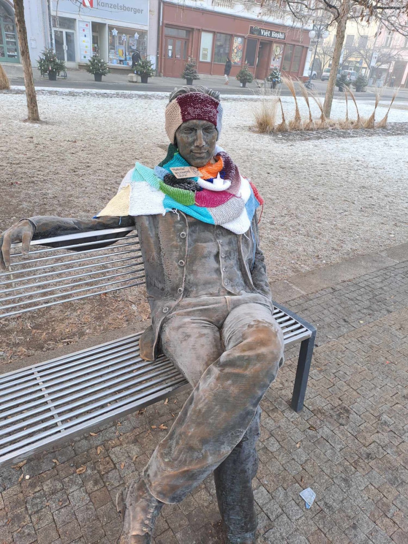 Prostějovský rodák a básník Jiří Wolker dostal na zahřátí šálu a čelenku. Upletl je spolek místních žen
