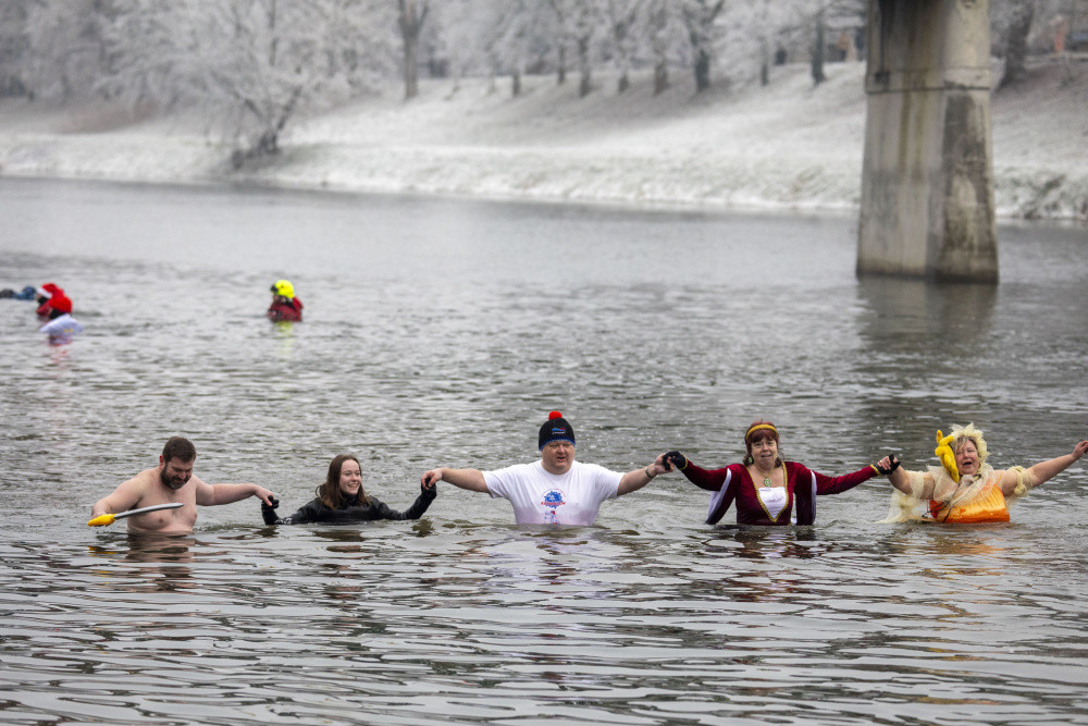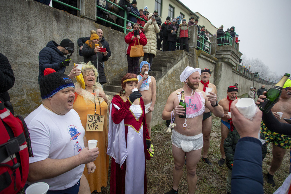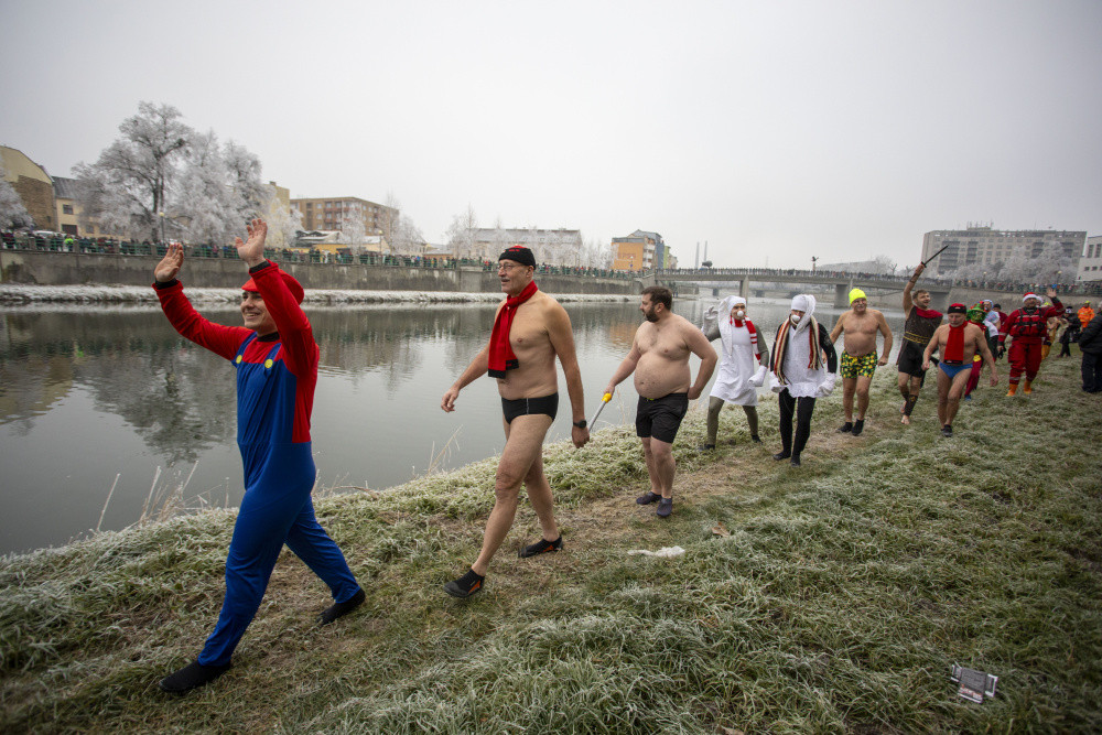 Do Bečvy v Přerově se dnes opět ponořili otužilci, rozloučili se tak s rokem 2024. Letos se konal 53. ročník