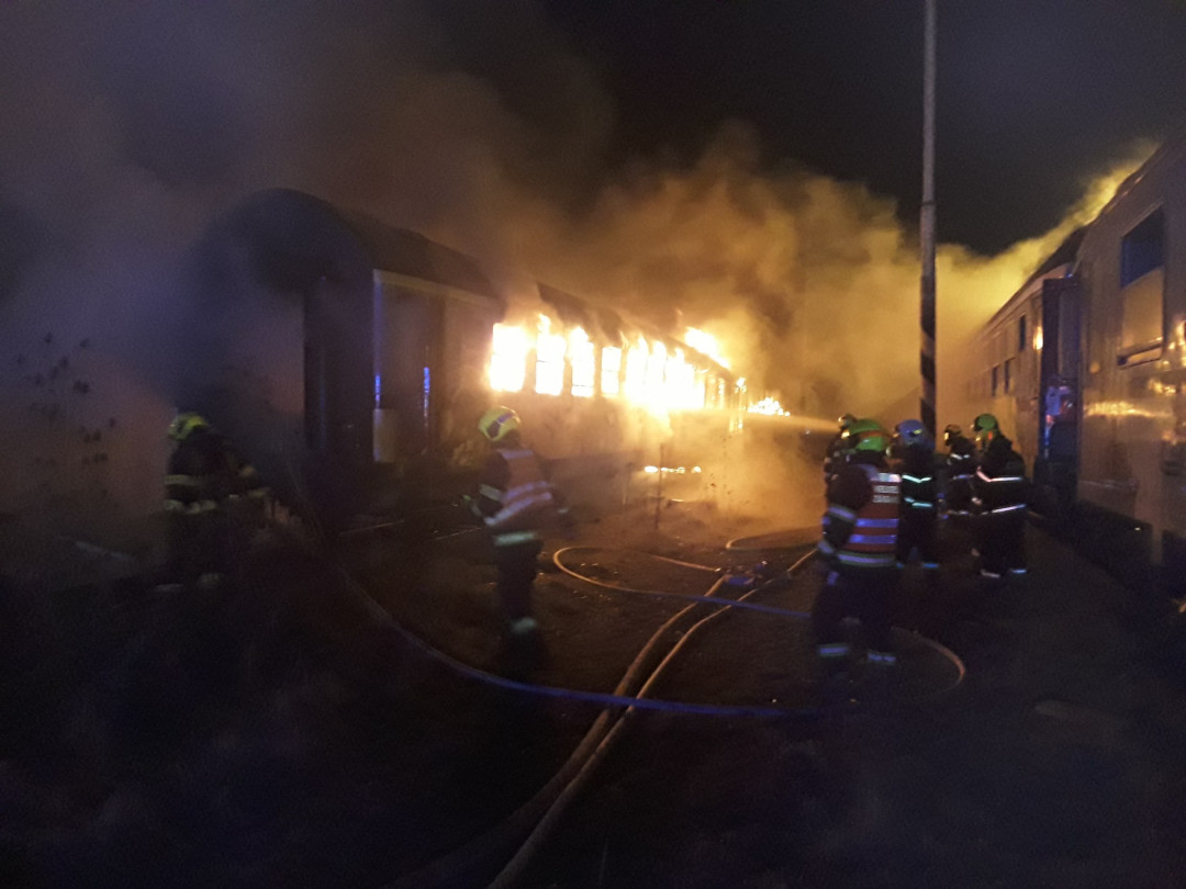Na odstavném kolejišti v Přerově hořely dva osobní vagony. Kdo je zapálil, zjišťují vyšetřovatelé