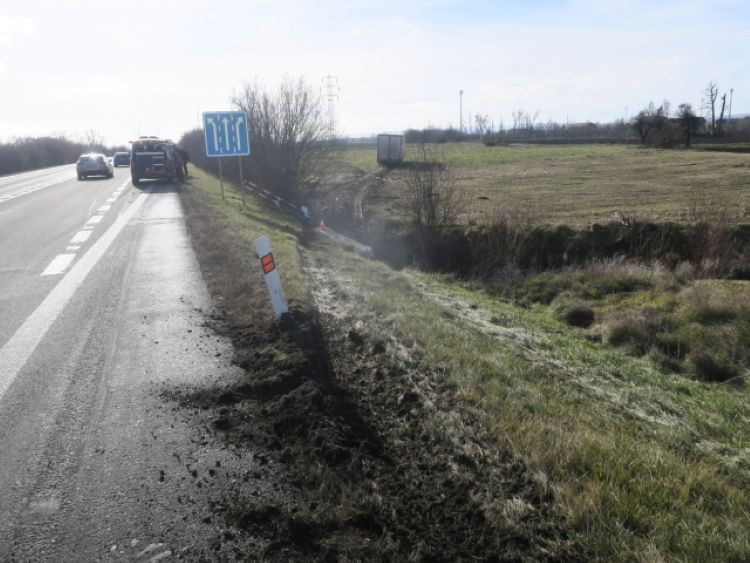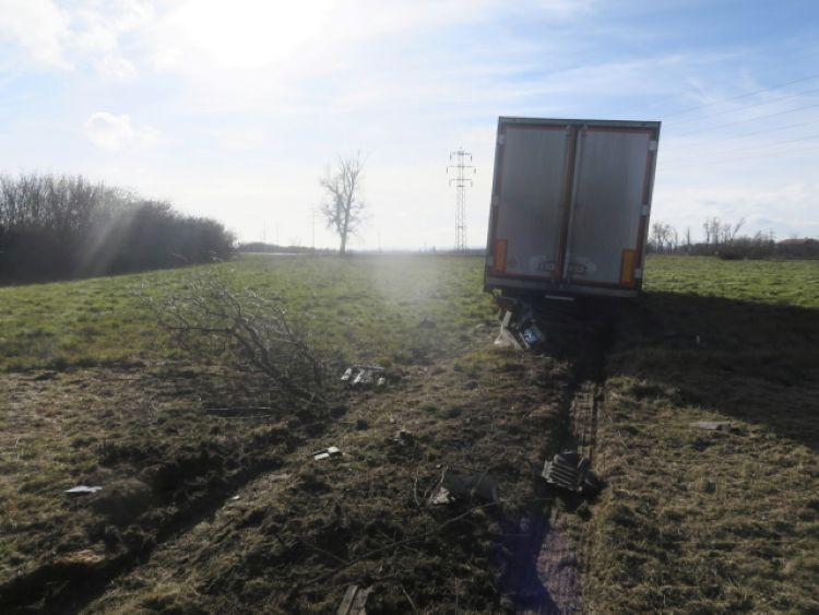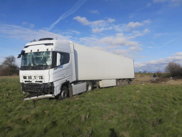 U Říkovic skončil kamion v poli. Řidič nereagoval správně na defekt zadní nápravy, dostal pokutu