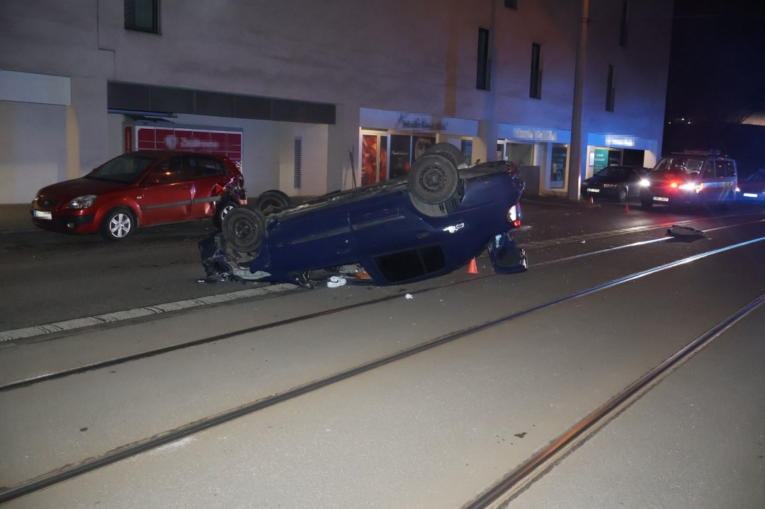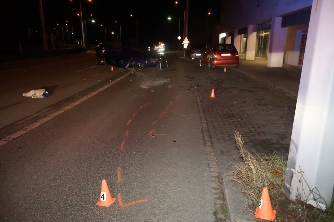 Nezletilý intoxikovaný řidič nad ránem převrátil v Olomouci auto, čtyři lidé utrpěli zranění