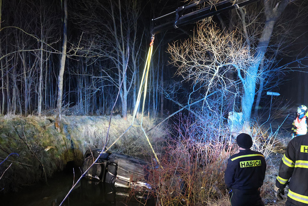 Hasiči lovili fabii z potoka na okraji Olomouce, opilá řidička přišla o řidičák