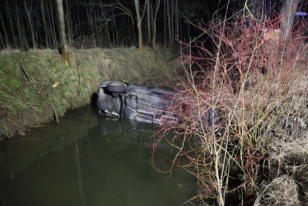 Hasiči lovili Fabii z potoka na okraji Olomouce, opilá řidička přišla o řidičák