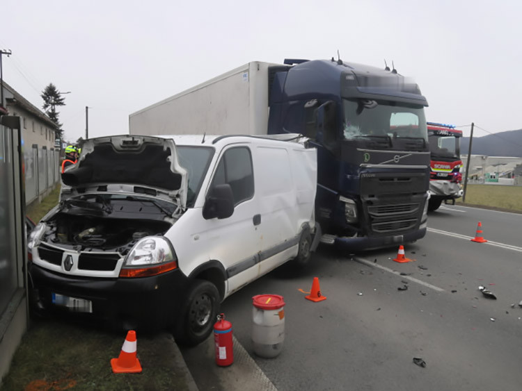 Dva zranění při nehodě na Hranicku. Dodávka zastavila kvůli dýmu z motoru, naboural do ní kamion