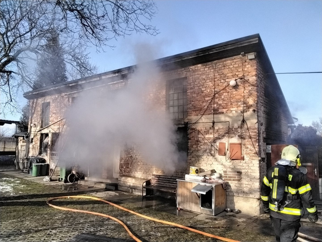 V Bernarticích hořela dílna, majitel se nadýchal zplodin. Hasiči zasahovali v dýchacích přístrojích