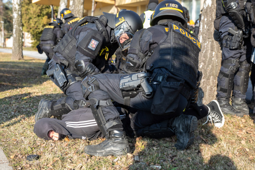 V Přerově cvičili těžkooděnci zákroky proti sportovním fanouškům