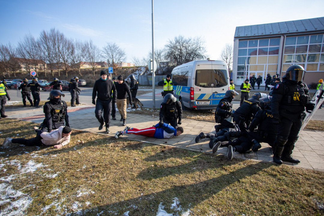VIDEO, FOTO: Křik a bitky. V Přerově cvičili těžkooděnci zákroky proti sportovním fanouškům