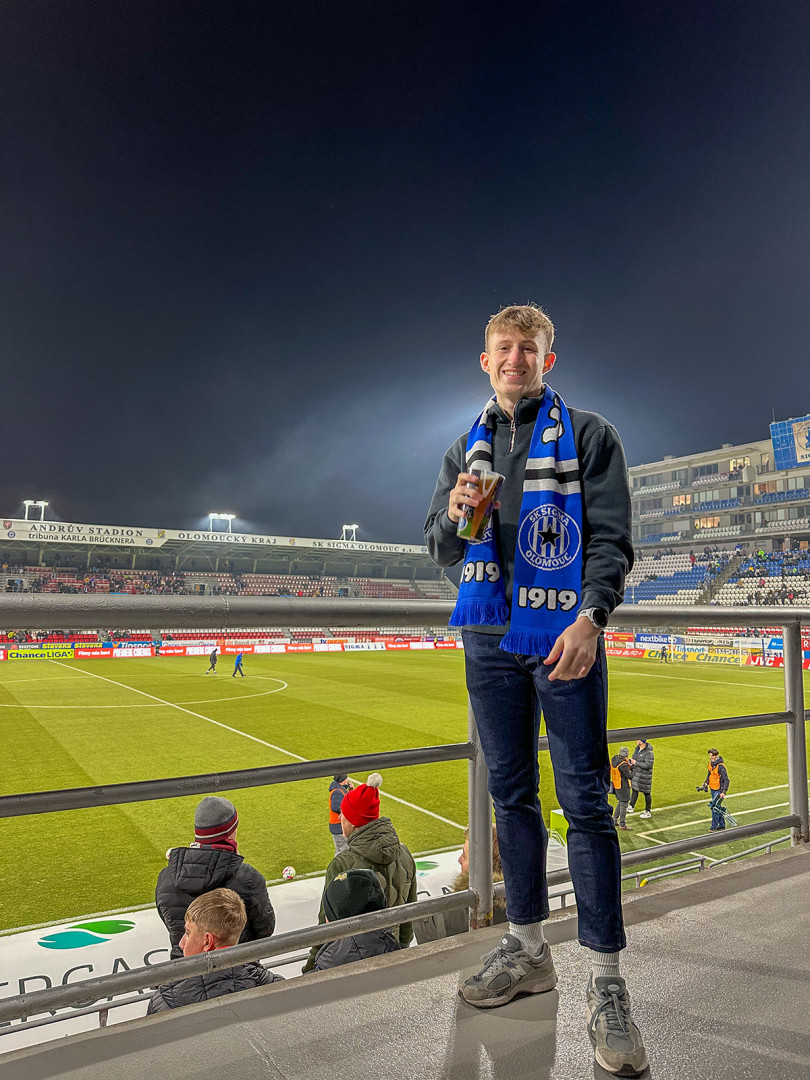 Fotbalový YouTuber zamířil z Anglie přes Polsko do Olomouce. Sigmě možná nosím štěstí, usmívá se Liam