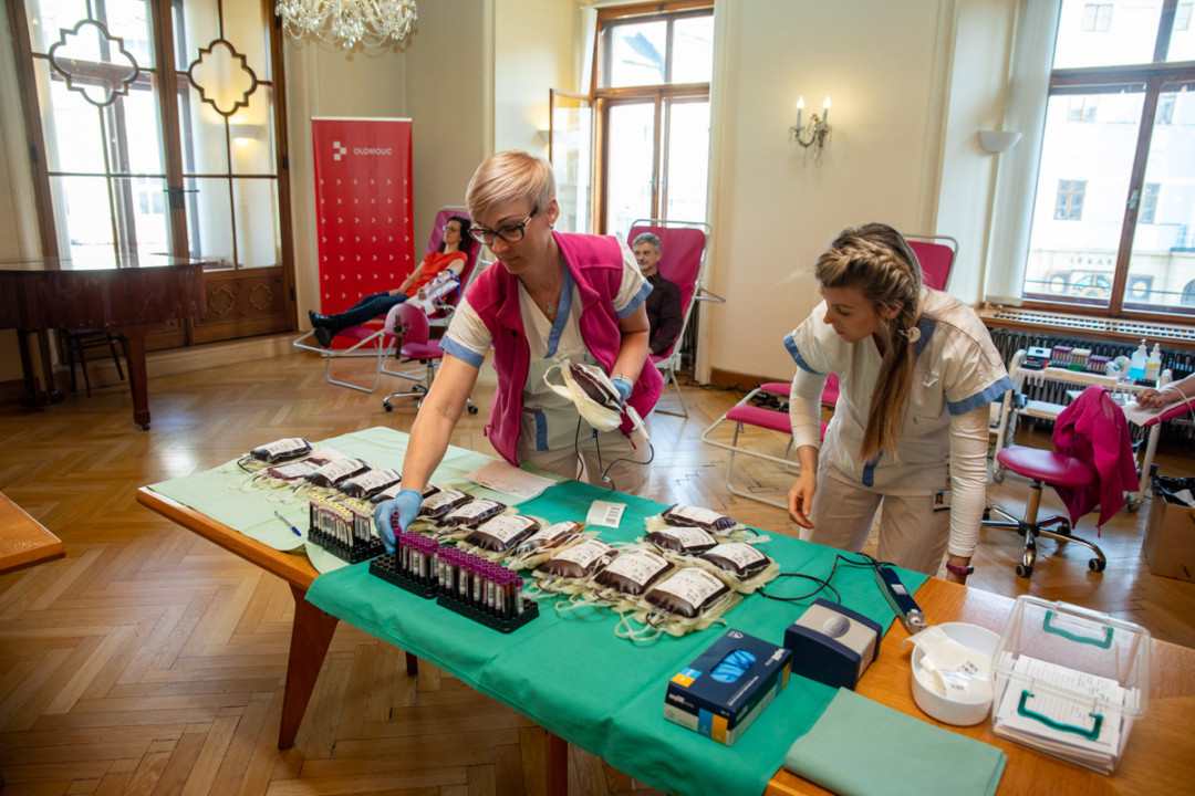 FOTOGALERIE: Dárci krve pomáhali na olomoucké radnici. Na první odběr přišel i olympionik Jurka