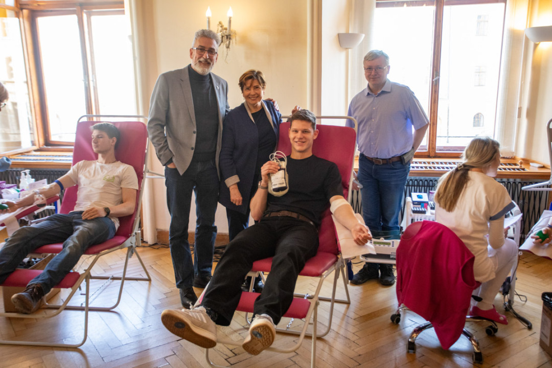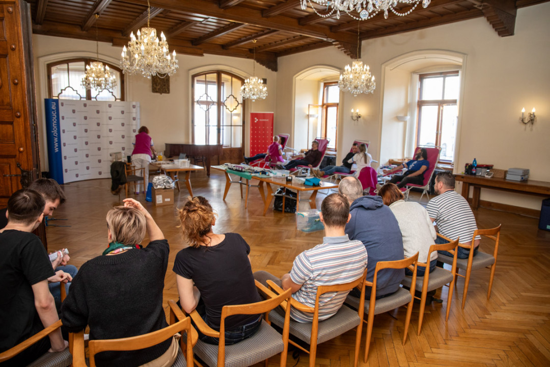 Dárci krve pomáhali na olomoucké radnici. Na první odběr přišel i olympionik Jurka