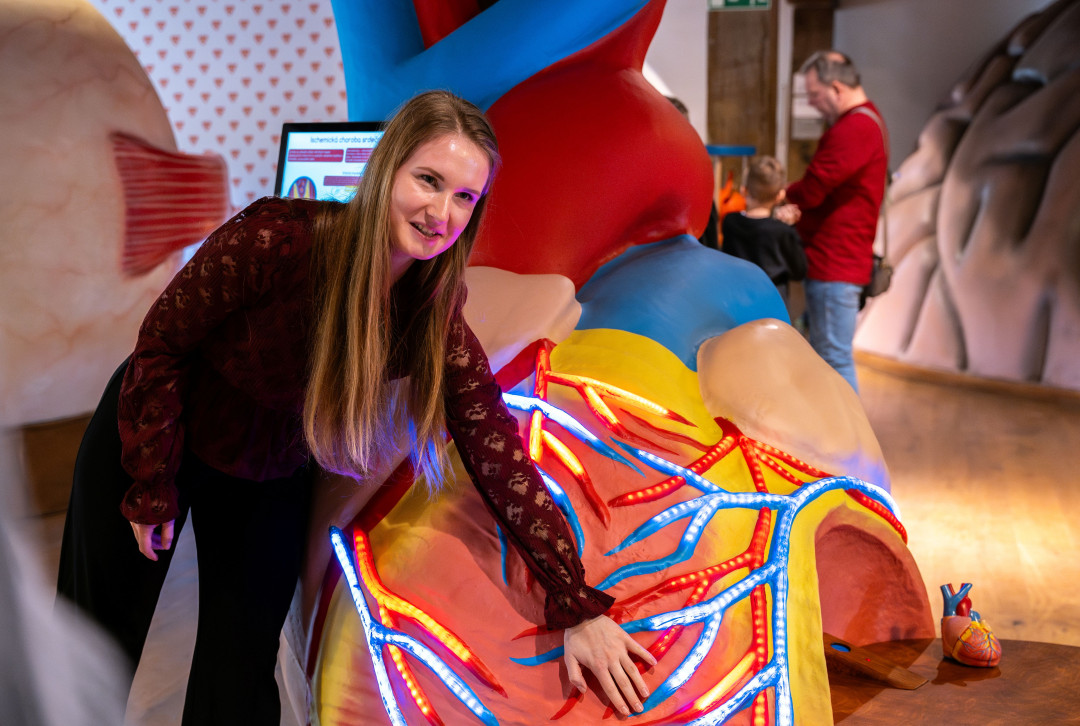 Olomouckou Pevnost poznání zdobí obří model srdce. Návštěvníci mohou sledovat tok krve nebo simulaci infarktu