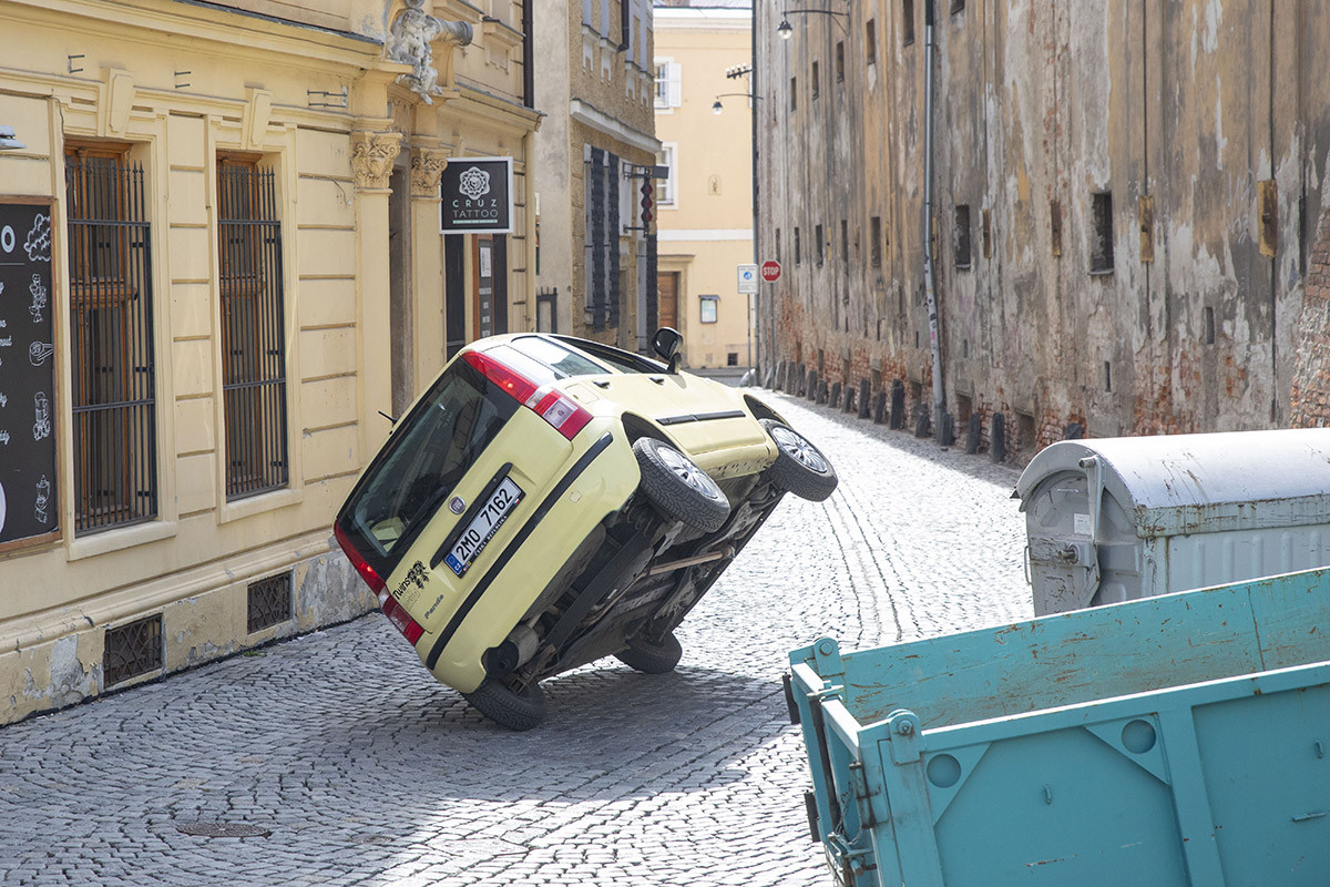 Kaskadérská jízda v centru Olomouce. Finišuje natáčení komedie Když se zhasne