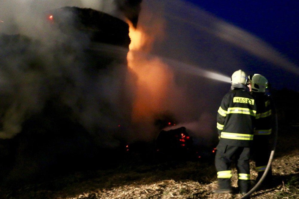 VIDEO: Hasiči likvidují v Olomouci požár balíků slámy, pracovat budou až do noci