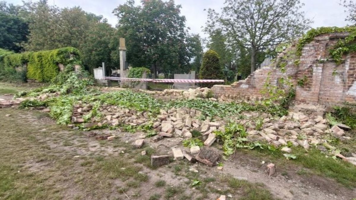 Na hřbitově v Prostějově se zřítilo 15 metrů obvodové zdi. Podle radnice je důvodem stáří