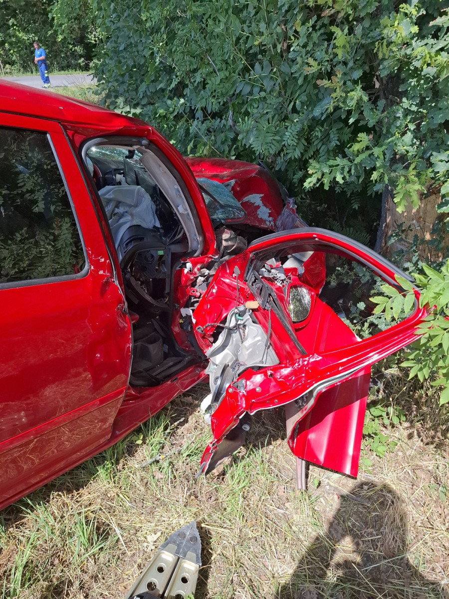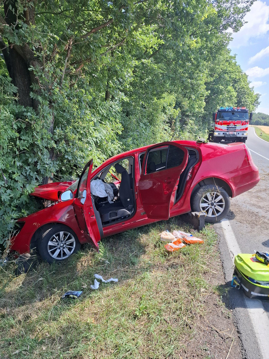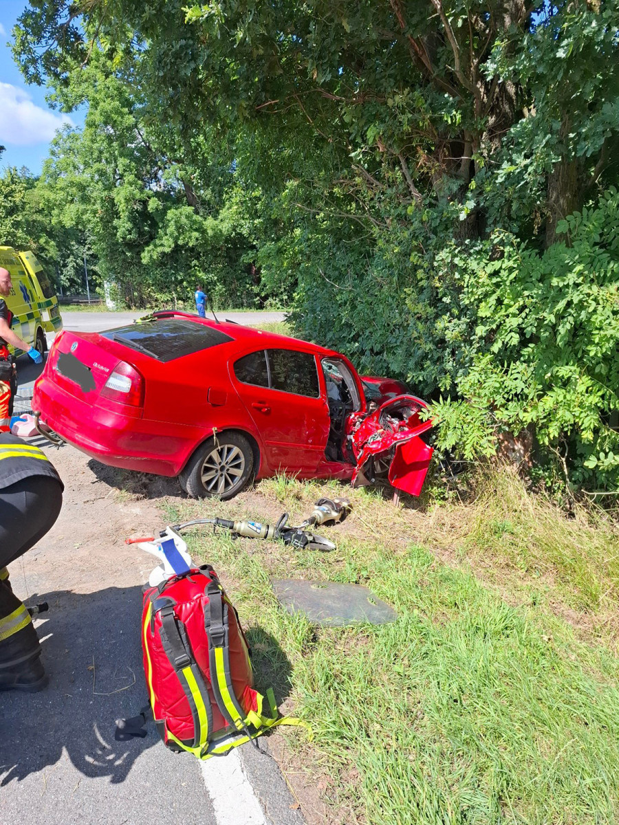 K havárii auta u Měrotína letěl vrtulník. Zraněnou osobu museli vyprostit hasiči