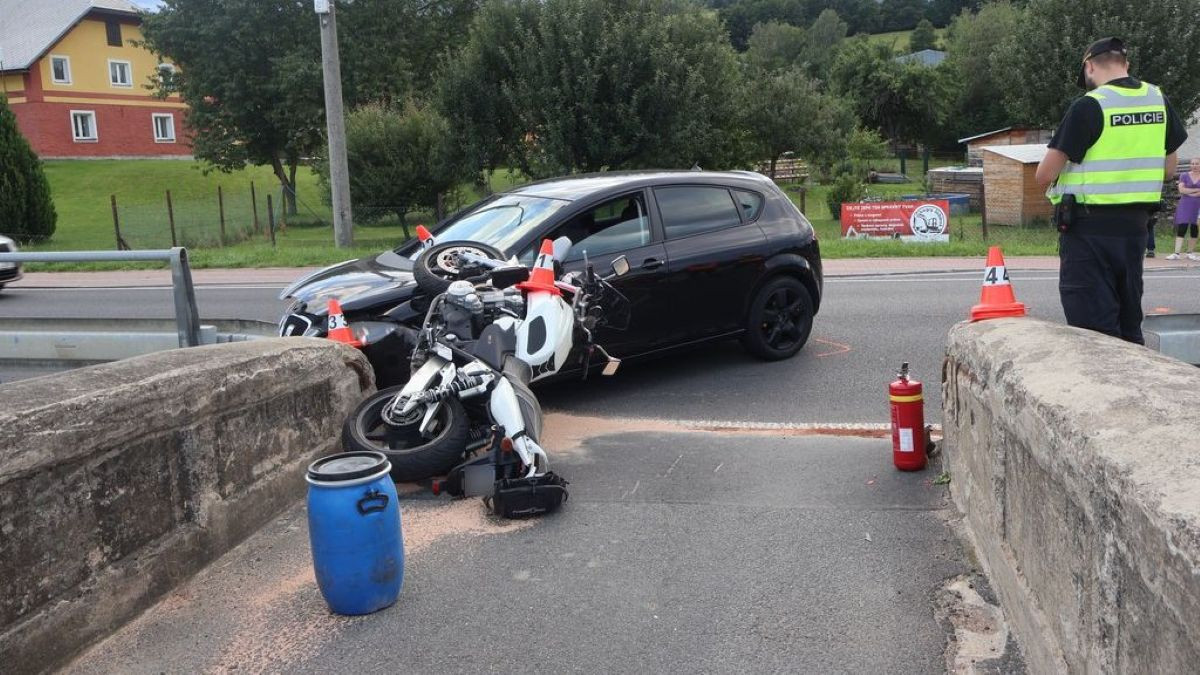 Pro motorkáře letěl vrtulník. V Adolfovicích ho při odbočování srazil osmnáctiletý řidič