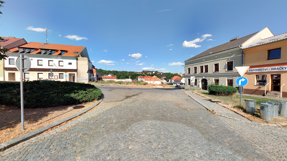 Pohled na místo stavby na rohu konického náměstí před dvěma lety